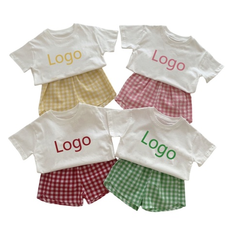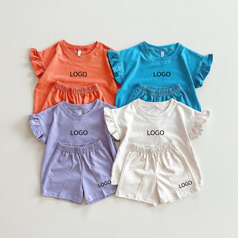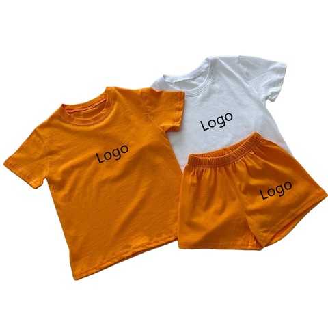 Nhà Máy Bán Buôn Cô Gái Quần Áo Bộ Cửa Hàng Rắn Màu In Logo Thấp Moq Chàng Trai Và Cô Gái Bông Hai Mảnh Trang Phục