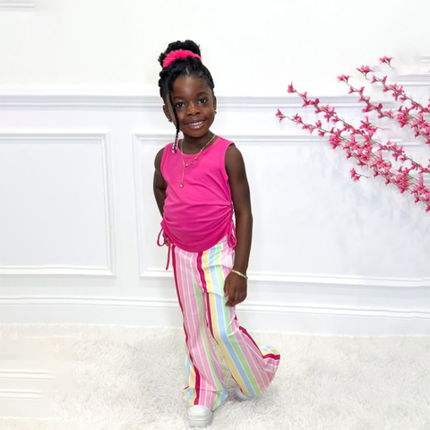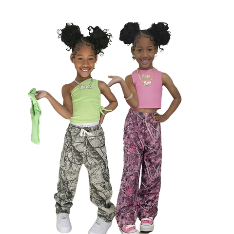 Toddler Cô Gái Quần áo 2 mảnh trang phục bên có thể điều chỉnh drawstrings Tank Tops và bùng xà cạp Pant Set