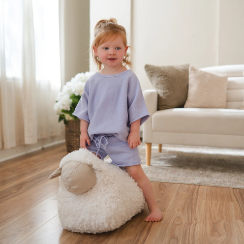 Boutique trẻ em màu rắn bông loungewear Tây ngắn áo len thiết lập cung cấp tùy chỉnh màu sắc kích cỡ cho 1-5 năm OEM